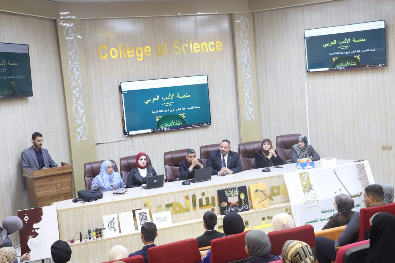 بإشراف السيد عميد كلية العلوم بجامعة القادسية الاستاذ الدكتور سلوان علي عبيد نظمت كلية العلوم مهرجان اللغة العربية والذي اقيم تحت شعار (لغة الضاد في ميادين العلوم)
