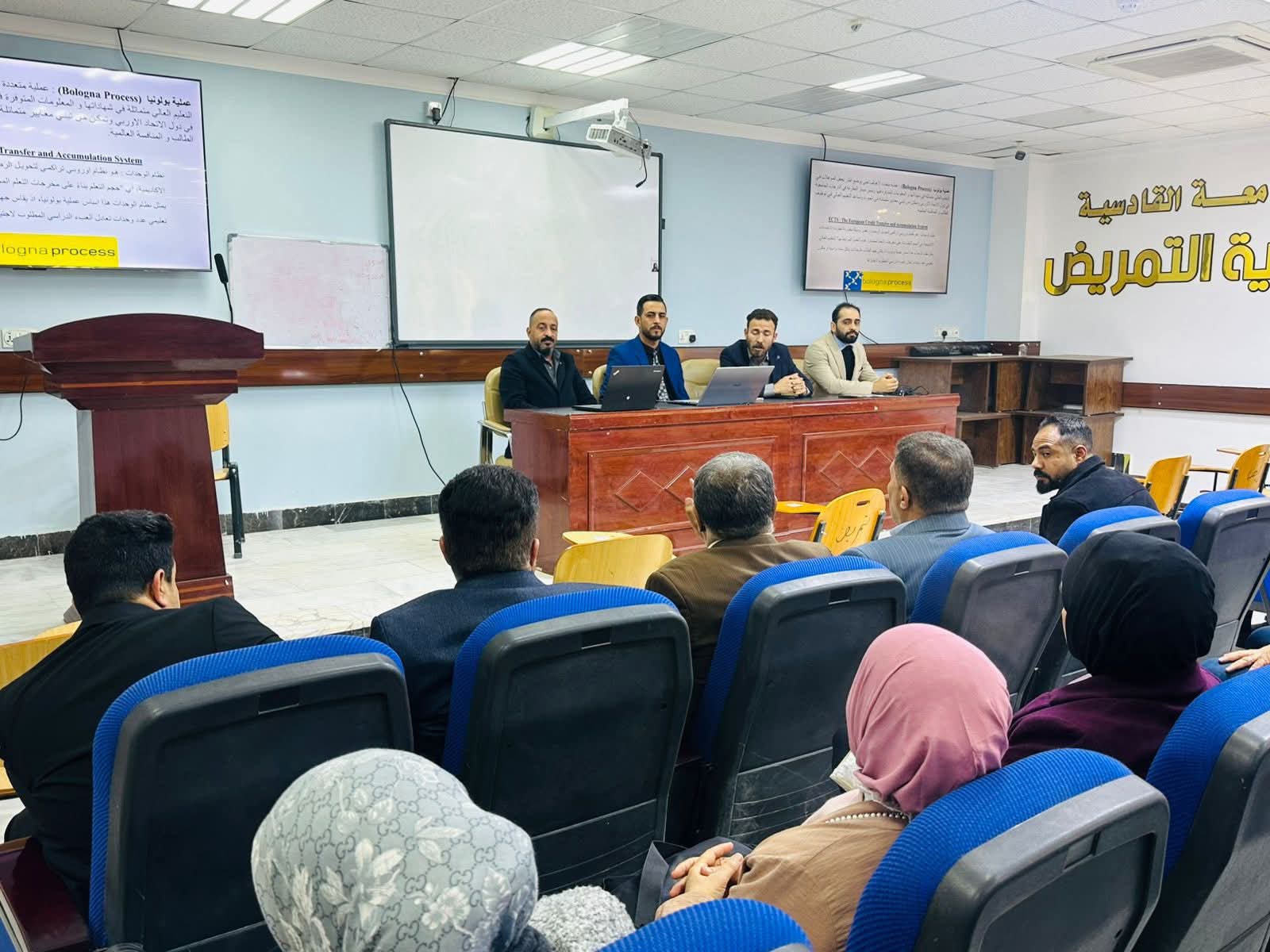 برعاية السيد رئيس جامعة القادسية الأستاذ الدكتور راهي كلف مهدي الياسري وبإشراف عميد كلية التمريض الاستاذ الدكتور ضرغام مجيد حميد الفتلاوي أقامت كلية التمريض ورشة علمية بعنوان (إدارة نظام بولونيا في كلية التمريض) حاضر فيها م.د. حيدر عبد الأمير وم.د. حسن نعيم وم.م. كاظم جميل وم.م. كرار نجاح
