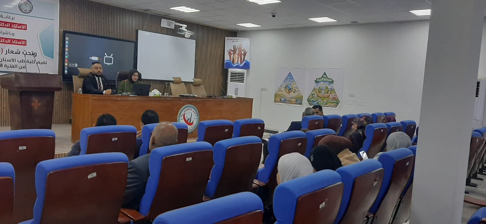 برعاية السيد رئيس جامعة القادسية الأستاذ الدكتور راهي كلف مهدي الياسري وبإشراف عميد كلية طب الأسنان الأستاذ الدكتور علي حسن علي مراد عُقدت في كلية طب الأسنان بجامعة القادسية وضمن فعاليات اسبوع الريادة العالمي وتحت شعار (من بلاد الرافدين تنطلق الأفكار) ورشة عمل بعنوان (التحكم الميكروبي والتعقيم في عيادات الأسنان) حاضر فيها م.م. أمير عبد الكاظم وم.م. صبا حميد زيدان