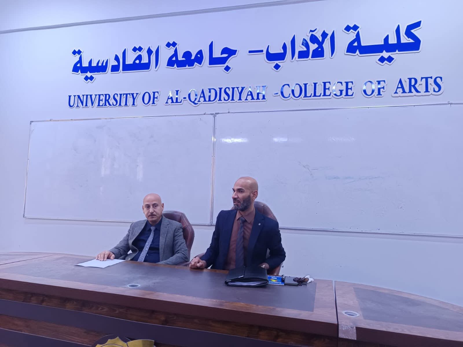 برعاية السيد رئيس جامعة القادسية الاستاذ الدكتور راهي كلف مهدي الياسري وبإشراف السيد عميد كلية الاداب الاستاذ الدكتور نبيل عمران الخالدي وضمن فعاليات أسبوع الريادة العالمي أقام قسم الجغرافية في كلية الاداب بجامعة القادسية ورشة عمل بعنوان (توظيف المصادر المنقولة والسمعية والرقمية في البحث العلمي) حاضر فيها الاستاذ الدكتور محمد عايد مايع وإدارة الجلسة الأستاذ الدكتور محمد حسين محيسن
