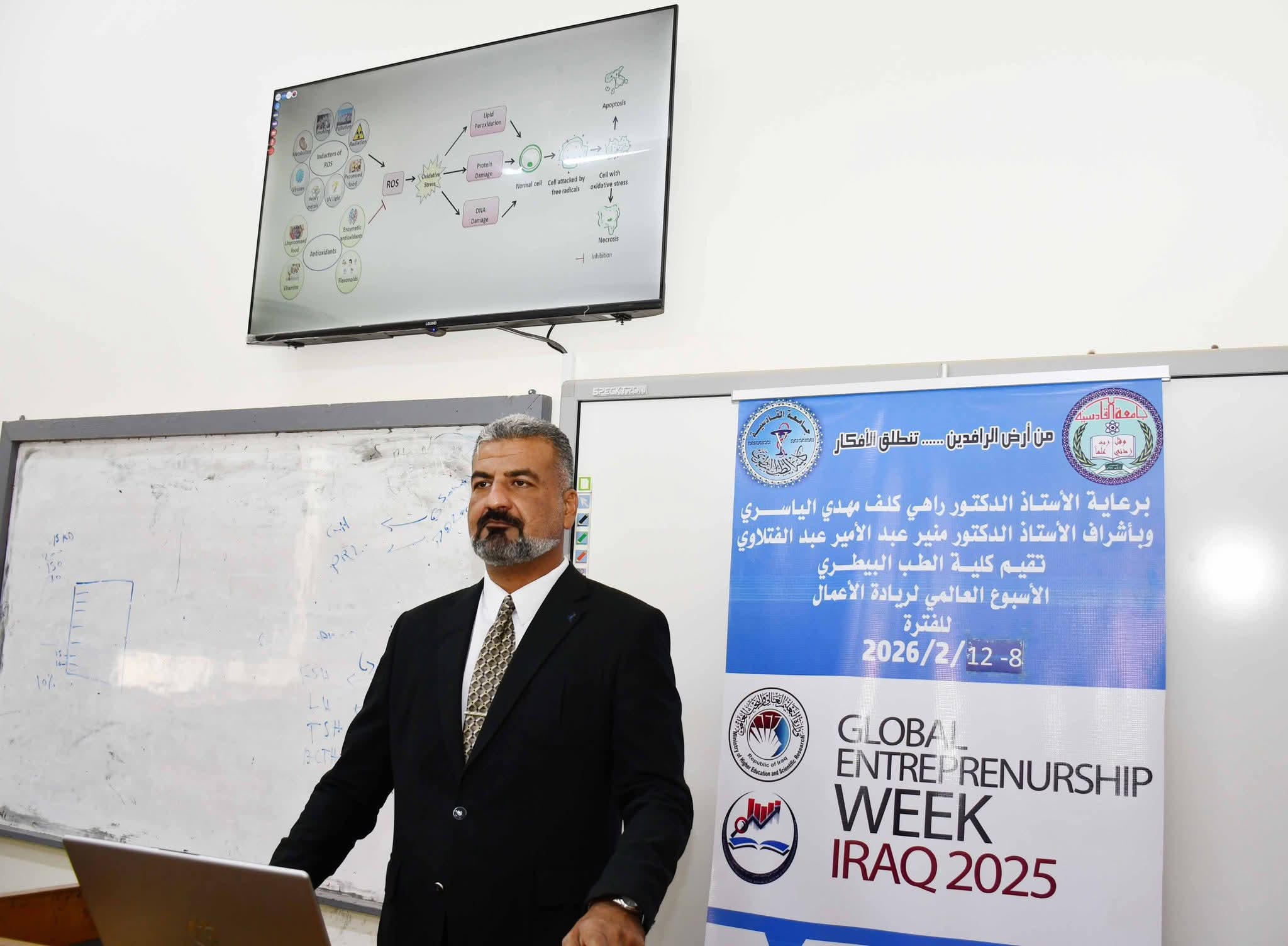 برعاية السيد رئيس جامعة القادسية الأستاذ الدكتور راهي كلف مهدي الياسري وبإشراف عميد كلية الطب البيطري الاستاذ الدكتور منير عبد الامير عبد الفتلاوي انجزت الكلية ورشة عمل ضمن فعاليات اسبوع الريادة العالمي بعنوان (استخدامات مضادات الاكسدة للوقاية من بعض الامراض) حاضر فيها أ.م.د. حيدر غازي عبد الشهيد