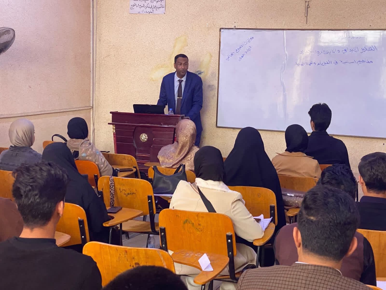 برعاية السيد رئيس جامعة القادسية الأستاذ الدكتور راهي كلف مهدي الياسري وبإشراف السيد عميد كلية التربية الأستاذ الدكتور ستار حميد حمزة الجنابي أقام قسم الفيزياء في كلية التربية ندوة علمية بعنوان (التفكير الإبداعي والابتكار والتجديد: مفاهيم أساسية في الفيزياء والحياة اليومية) حاضر فيها ا.د عباس جواد عبد الكاظم وا.م.د عادل عيدان عبد