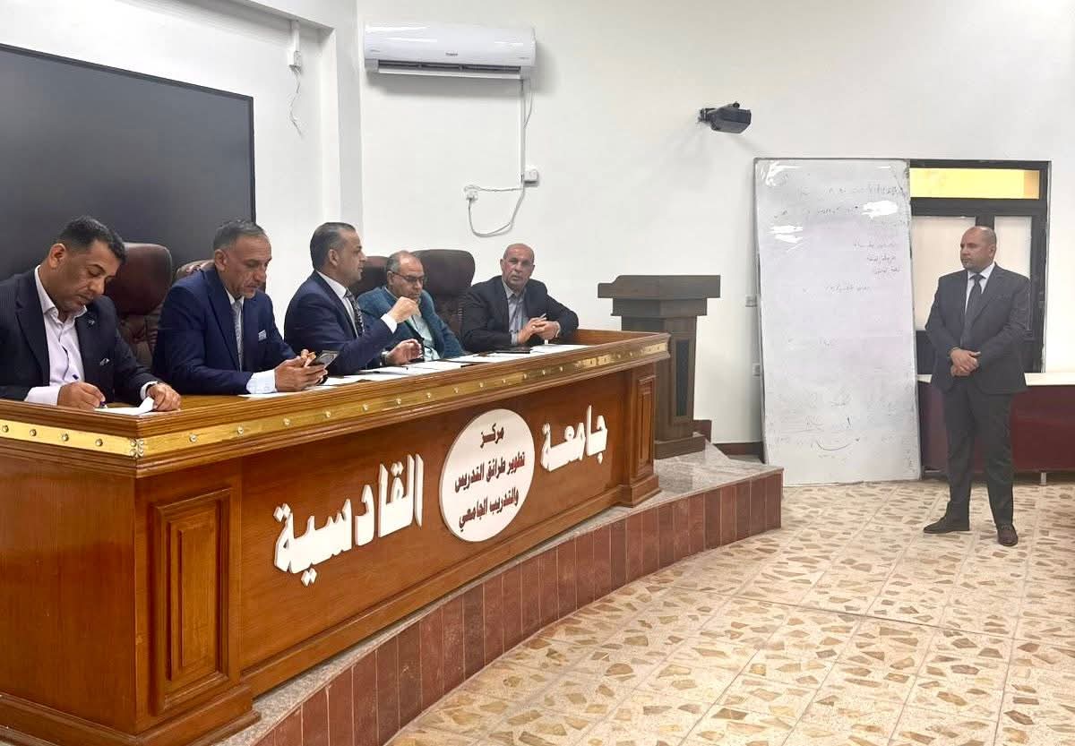 أجرى مركز تطوير طرائق التدريس والتدريب الجامعي بجامعة القادسية اختبار صلاحية التدريس للتخصص الإنساني المحدث لمجموعة من المتقدمين من الوزارات والمؤسسات الحكومية بحضور اللجنة العلمية المتخصصة .