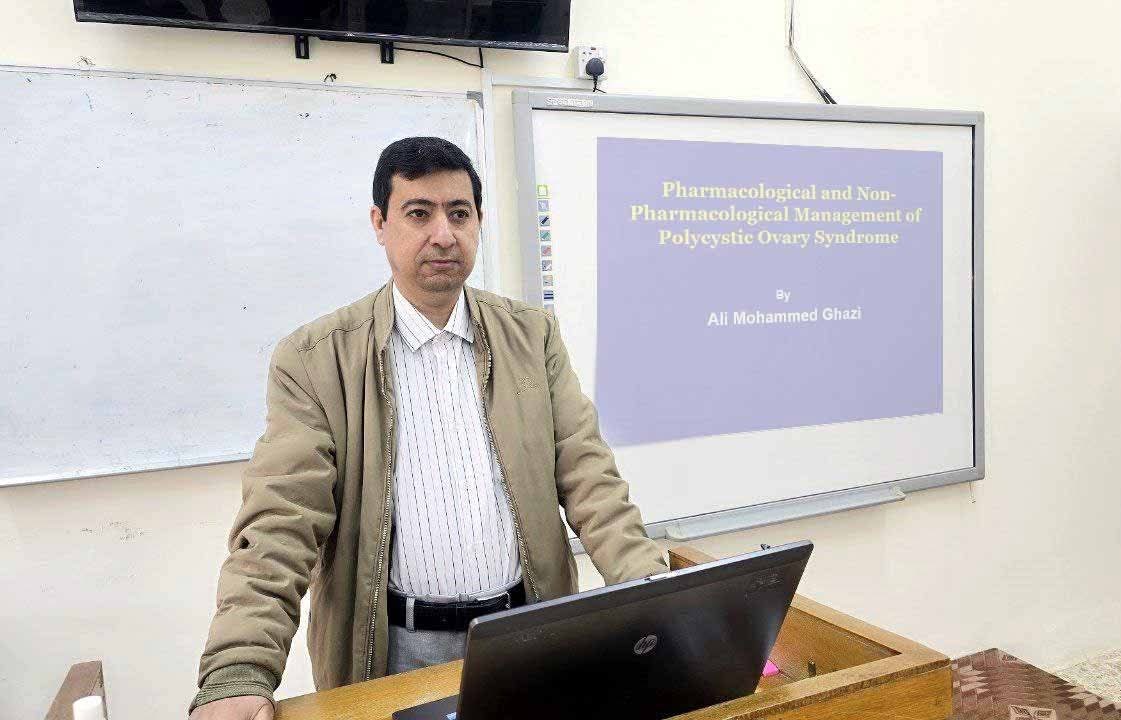 برعاية الأستاذ الدكتور راهي كلف مهدي الياسري رئيس جامعة القادسية وبإشراف الأستاذ الدكتور منير عبد الأمير عبد الفتلاوي عميد كلية الطب البيطري انجزت وحدة بحوث الامراض المشتركة في كلية الطب البيطري حلقة نقاشية بعنوان (التدبير العلاجي الدوائي وغير الدوائي لمتلازمة المبيض متعدد الكيسات) حاضر فيها الاستاذ الدكتور علي محمد غازي المحنة