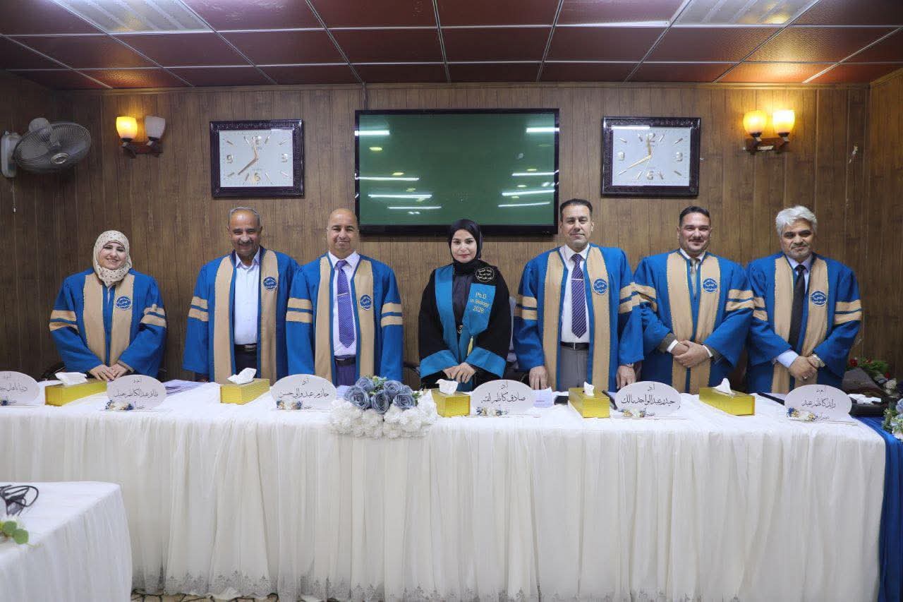 نوقشت في كلية التربية بجامعة القادسية أطروحة الدكتوراه الموسومة بـ (تاثير بعض العوامل البيئية في انتاج الاحماض الدهنية (EPA-DHA) من بعض انواع الطحالب وتقيم فعاليتها السمية الخلوية ضد بعض الخطوط السرطانية) للباحثة حميدة عيال مكطوف وبإشراف أ.م.د رائد كاظم عبد