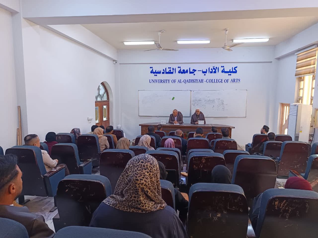 برعاية السيد رئيس جامعة القادسية الاستاذ الدكتور راهي كلف مهدي الياسري وبإشراف السيد عميد كلية الآداب الاستاذ الدكتور نبيل عمران موسى الخالدي أقامت كلية الآداب ندوة عملية بعنوان (التحديات نحو مشاريع تنموية ذات اثر مستدام) حاضر فيها ا.د صلاح كاظم جابر وإدارة الندوة ا.د مؤيد فاهم