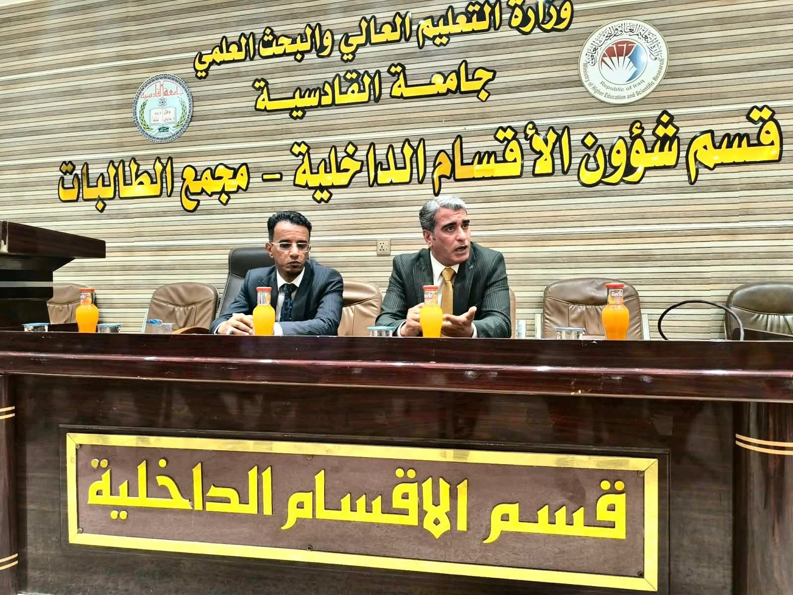 برعاية السيد رئيس جامعة القادسية الاستاذ الدكتور راهي كلف مهدي الياسري وبإشراف السيد مدير قسم الاعلام والإتصال الحكومي أ.م.د سالم جمعة كاظم والسيد مدير قسم الاقسام الداخلية الاستاذ الدكتور احمد فاهم، اقام قسم الاعلام وبالتعاون مع قسم الأقسام الداخلية ورشة علمية بعنوان (التأثيرات السلبية لوسائل التواصل الاجتماعي على الشباب) حاضر فيها :