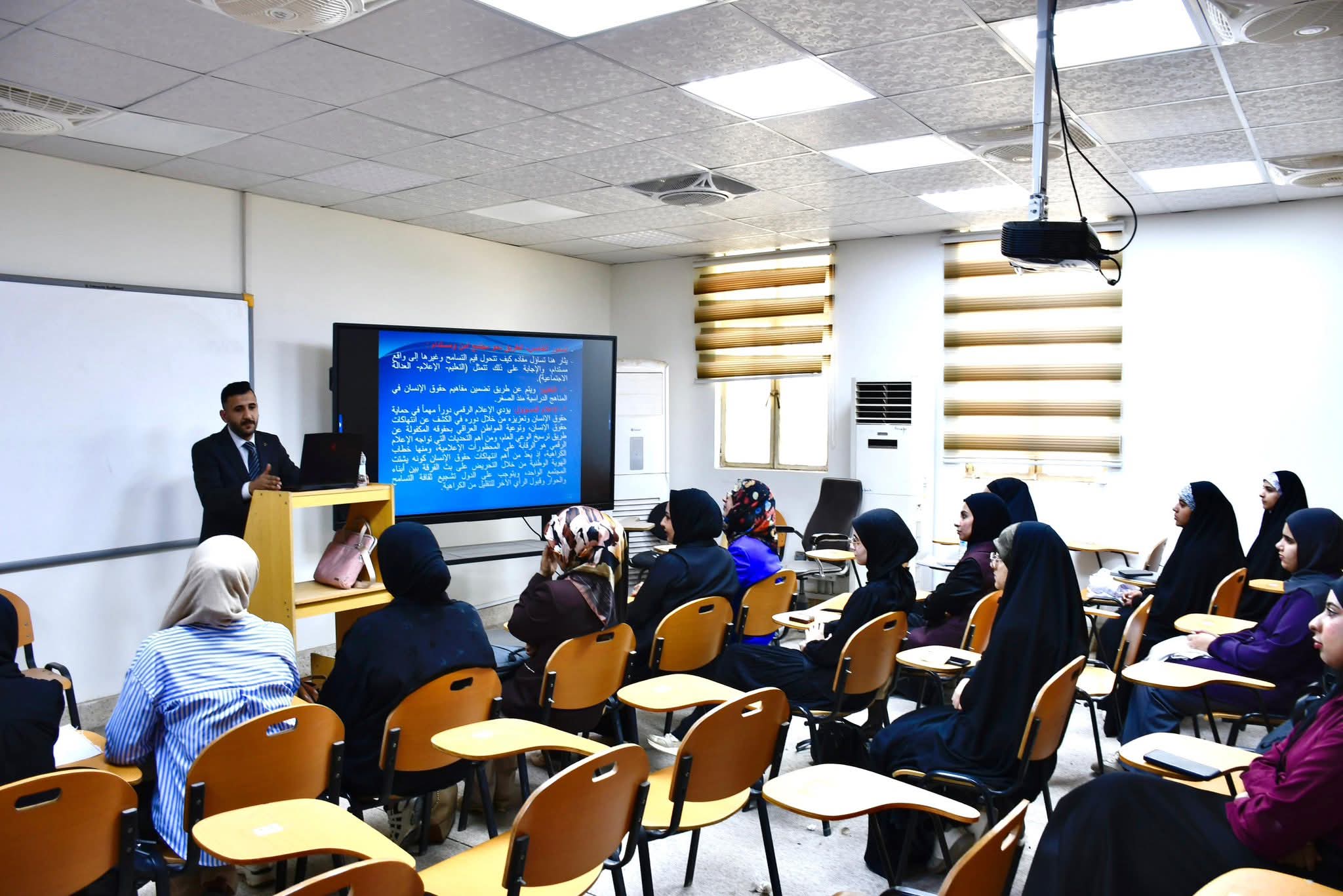 برعاية السيد رئيس جامعة القادسية الأستاذ الدكتور راهي كلف مهدي الياسري وبإشراف السيد عميد كلية الصيدلة الأستاذ المساعد الدكتور أسعد حسن الزيدي. نظمت وحدة شؤون المرأة في كلية الصيدلة بجامعة القادسية دورة علمية بعنوان (حقوق الانسان والتعايش السلمي_ نحو مجتمع آمن ومستدام) حاضر فيها أ.م.د. اولياء جبار الهلالي وم.د نور عبد الخضر صلال وأ.م نيران فليح حسن وم.م وسام كريم راشد