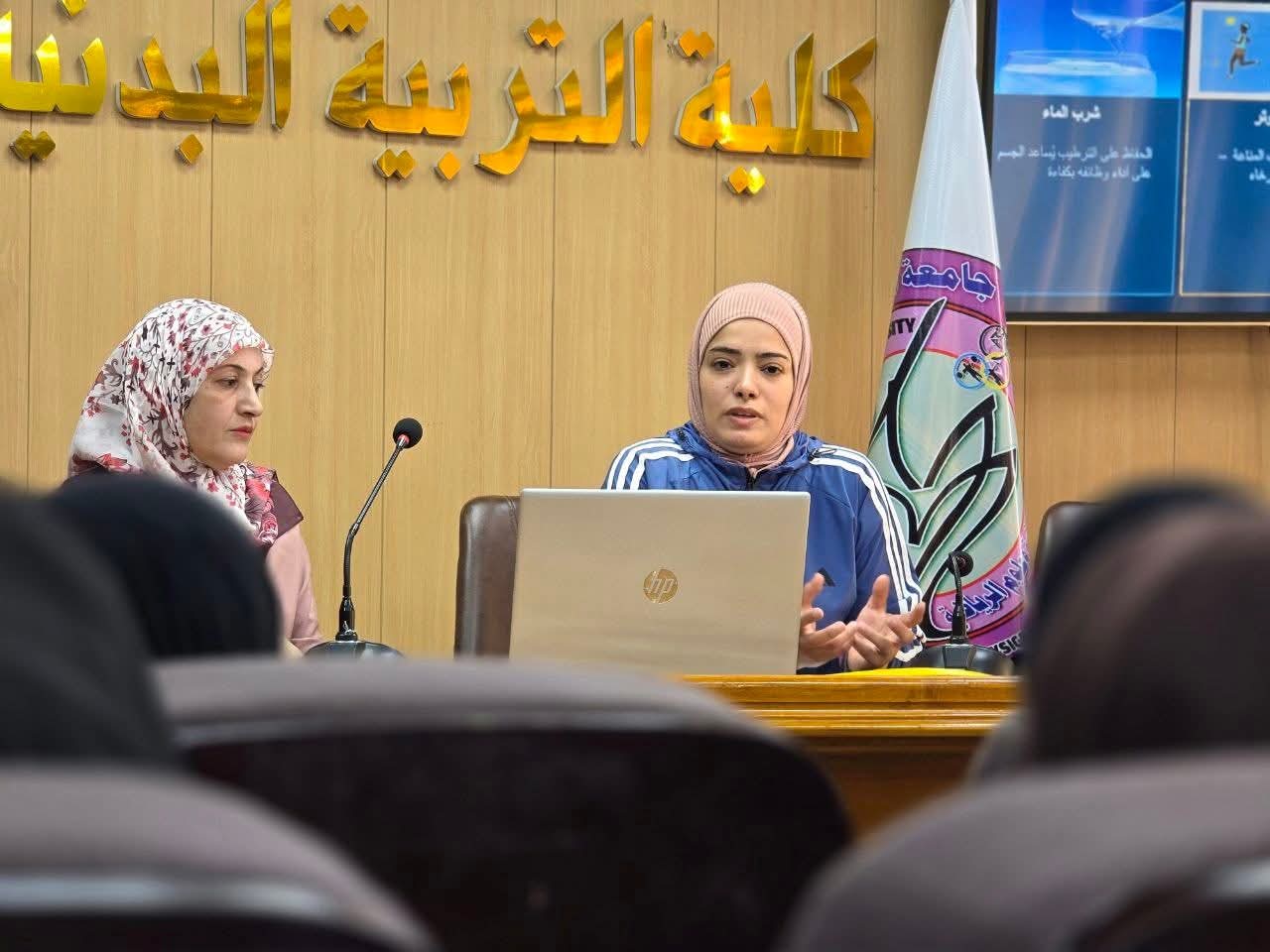برعاية السيد رئيس جامعة القادسية الاستاذ الدكتور راهي كلف مهدي الياسري وباشراف السيد عميد كلية التربية البدنية وعلوم الرياضة الاستاذ الدكتور بشير شاكر العوادي اقامت وحدة التعليم المستمر ورشة علمية بعنوان (دور الرياضة والتغذية في رفع مناعة الجسم ) حاضر فيها أ.م.د بسمة توفيق وم.م زمن عبد السلام