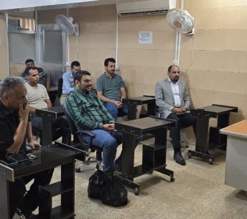 اذ تجري المتابعة الدورية المستمرة للالتزام التام بتعليمات وزارة التعليم العالي واللجنة الوطنية العليا للصحة والسلامة بالعمل على توفير البيئة الصحية من تعفير وكمامات وتباعد اجتماعي ومقياس درجات الحرارة .