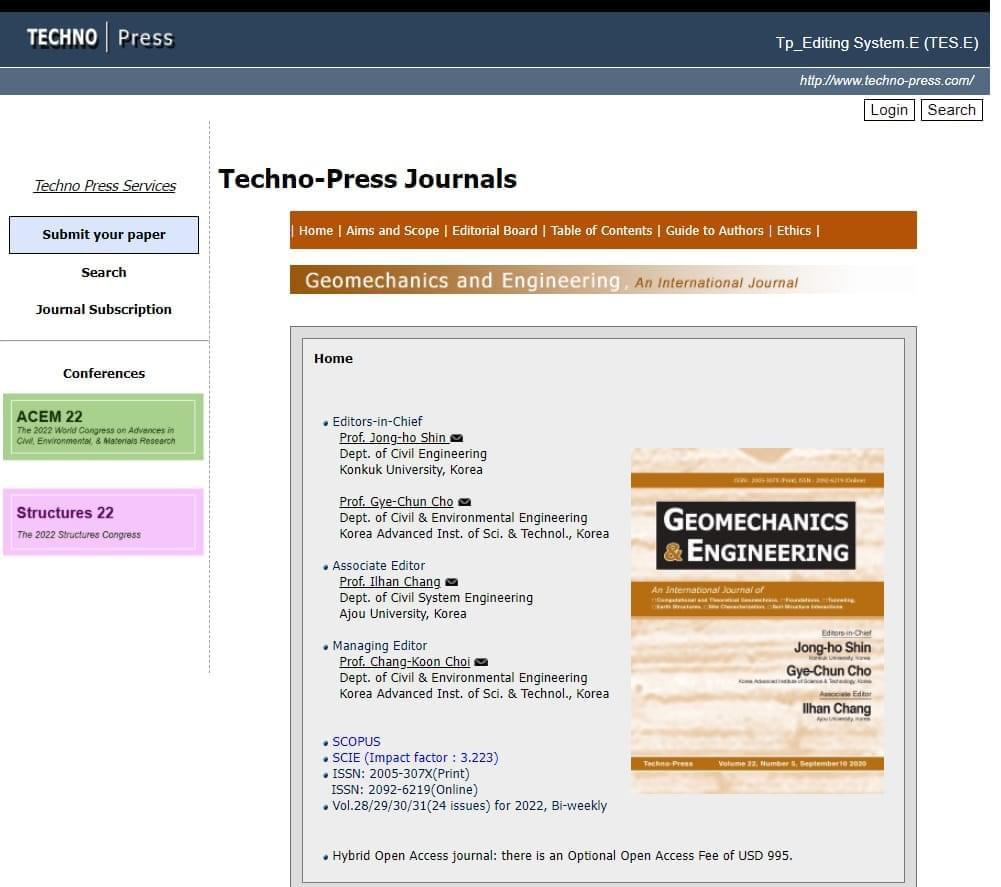من الجدير بالذكر ان مجلة الهندسة و الجيوميكانيك هي احد المجلات الرائدة في مجال هندسة الجيوتكنيك و الجيولوجيا الهندسية و تنشر من دار النشر الكوري Techno-Press و وبمعامل تأثير كلاريفيت مقدارة 3.2 و معامل تأثير سكوبس 5.4. المجلة كذلك مصنفة ضمن مجلات الربع الثاني حسب تصنيف الموقع الاسبانيScimago .