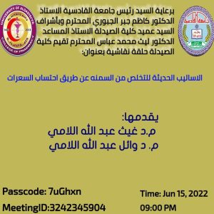 اقامت كلية الصيدلة في جامعة القادسية حلقة نقاشية علمية حول الاساليب الحديثة للتخلص من السمنة عن طريق احتساب السعرات الحرارية .