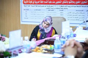 تمت مناقشة رسالة ماجستير بتخصص طرائق تدريس اللغة العربية في كلية التربية بجامعة القادسية موسومةً ب( مكونات التحويل اللغوي وعلاقتها بالتفكير التحليلي عند طلبة أقسام اللغة العربية في كليات التربية ) للباحثة ضحى محمد فاضل العبيدي تحت إشراف الاستاذ المساعد الدكتور علي كاظم ياسين المحنة.