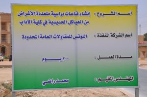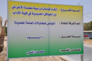 يتواصل العمل بتشييد مشاريع عمرانية جديدة بكلية الاداب عبر إنشاء قاعات دراسية ذات طابقين متعددة الاغراض من الهياكل الحديدية وبمساحة 500 متراً مربعاً فضلاً عن استمرار الجهد الانشائي ببناء مشروع النادي الطلابي بكلية الاداب وبمواصفات حديثة.
