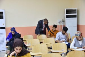 تم الاطلاع على أداء الطلبة للامتحانات النهائية ومدى الالتزام بالإجراءات المتخذة لتوفير بيئة جامعية مناسبة تتضمن توافر القاعات على أجهزة التكييف والإنارة والماء الصالح للشرب واستمرار التيار الكهربائي بالتناوب مع المولدات والحضور المبكر للمراقبين والاداء الفعلي للجان الامتحانية وجميع المستلزمات والخدمات الضرورية لضمان توفير الأجواء الملائمة للطلبة.