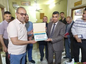 بحضور السيد مساعد رئيس الجامعة للشؤون الادارية الاستاذ الدكتور أثير عبد الامير المشهدي أقام قسم المشاريع والاعمار برئاسة الجامعة وشعبة العقود الحكومية حفلاً تكريمياً لمهندسي القسم ومنتسبيه الذين بلغوا السن التقاعدي.