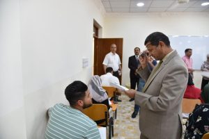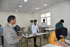 تم الاطلاع على أداء الطلبة للامتحانات النهائية ومدى الالتزام بالإجراءات المتخذة لتوفير بيئة جامعية مناسبة تتضمن توافر القاعات على أجهزة التكييف والإنارة والماء الصالح للشرب واستمرار التيار الكهربائي بالتناوب مع المولدات والحضور المبكر للمراقبين والاداء الفعلي للجان الامتحانية وجميع المستلزمات والخدمات الضرورية لضمان توفير الأجواء الملائمة للطلبة.