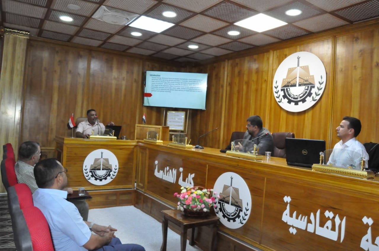 اقام قسم الهندسة الميكانيكية في كلية الهندسة بجامعة القادسية برعاية السيد رئيس جامعة القادسية أ.د. كاظم جبر الجبوري وإشراف السيد عميد الكلية أ.د. باسم حسن شناوة ندوة علمية بعنوان [الطاقة البديلة المستدامة – الإقتراحات والحلول] على قاعة مناقشات الدراسات العليا .