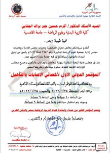 في المؤتمر الدولي الاول لاختصاصيي الاصابات والتأهيل بجمهورية مصر العربية