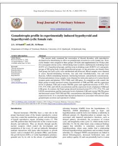 تضمنت الدراسة تقييم العلاقة بين اضطرابات الغدة الدرقية مع الخلل التناسلي، من خلال تحديد تأثيرها على إفراز محرضات القند في إناث الجرذان منتظمة دورة الشبق.