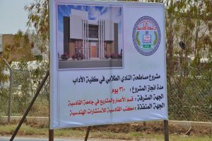 حيث يتواصل الجهد الهندسي المتمثل بقسم الاعمار والمشاريع في جامعة القادسية والكلية بالعمل على انجاز مشاريع كلية الآداب.