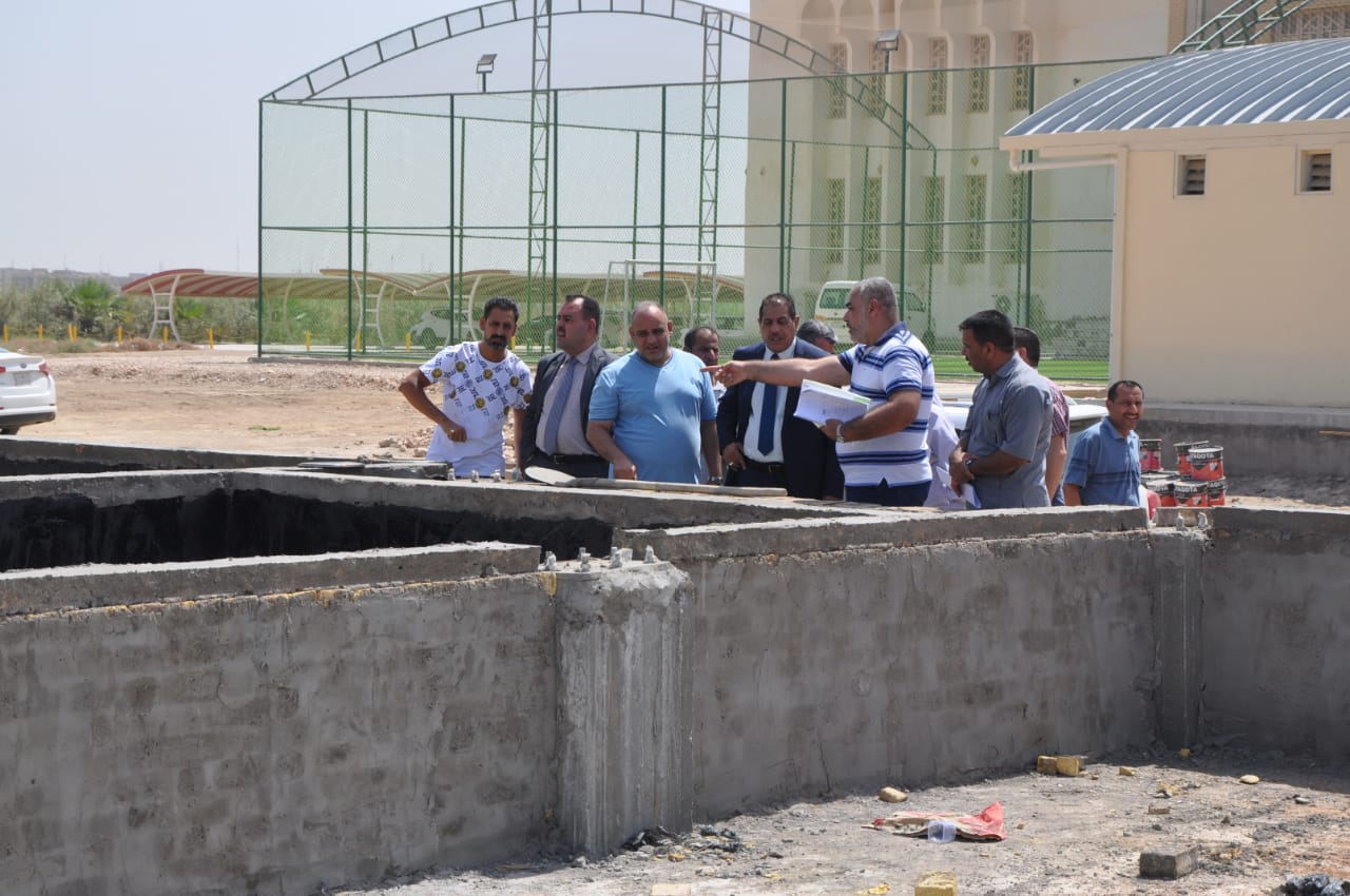 موقع مشروعي كلية الآداب ومشروع انشاء قاعات دراسية ذات طابقين متعددة الاغراض من الهياكل الحديدي وبمساحة 500 متراً مربعاً ومشروع النادي الطلابي بمواصفات حديثة واطلع على مراحل الانجاز فيهما.