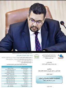 سيشارك عميد كلية كلية الفنون الجميلة جامعة القادسية الاستاذ الدكتور كاظم نوير الزبيدي إذ في الملتقى الدولي للمقاولاتية الثقافية والفنية كعضواً في اللجنة العلمية للملتقى والذي ستقيمه كلية الفنون والثقافة في جامعة قسنطينة 3 صالح بوبنيدر في الجزائر يومي 27-28 / نوفمبر/ 2022 تحت شعار ( الثقافة والفن في خدمة الاقتصاد الوطني ) .