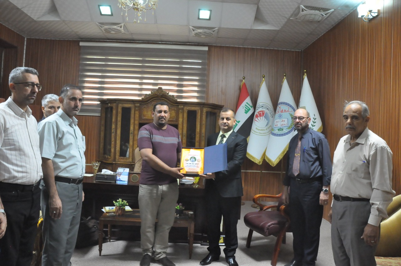 كرم عميد كلية الهندسة بجامعة القادسية أ.د. باسم حسن شناوة المنتسب في مديرية ماء الديوانية الدكتور ستار جبار مراد بدرع التميز والابداع لدوره في نشر البحوث العلمية في المجلات العلمية الرصينة والمشاركة في المؤتمرات العلمية الدولية .
