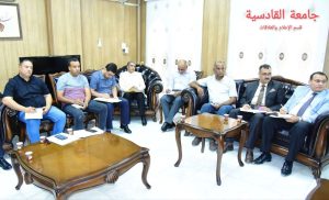 ضمن اجتماعاته الدورية وتفقده آليات سير العمل الاداري اجتمع السيد رئيس جامعة القادسية الاستاذ الدكتور كاظم جبر الجبوري بمكتبه السادة مدراء الاقسام الادارية برئاسة الجامعة للتحاور حول اليات سير العمل الاداري ومعالجة المعوقات.