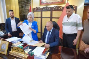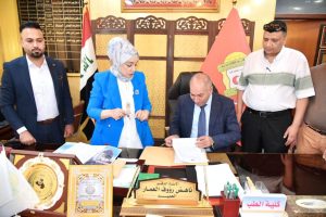 تم الاتفاق على إبرام العقد الرسمي مع شركة الخبرة الهندسية التخصصية وشركة باهل للمقاولات العامة بحضور مدير الشركة ومعاون العميد الاداري الاستاذ المساعد الدكتور احمد عبد الامير الشباني ومسؤول شعبة العقود الحكومية برئاسة الجامعة السيدة عفت غني البغدادي والملاك الهندسي بالكلية من أجل إنشاء قاعات دراسية ومختبرات علمية متعددة الطوابق و الأغراض من الهياكل الحديدية steel structure في بناية كلية الطب .