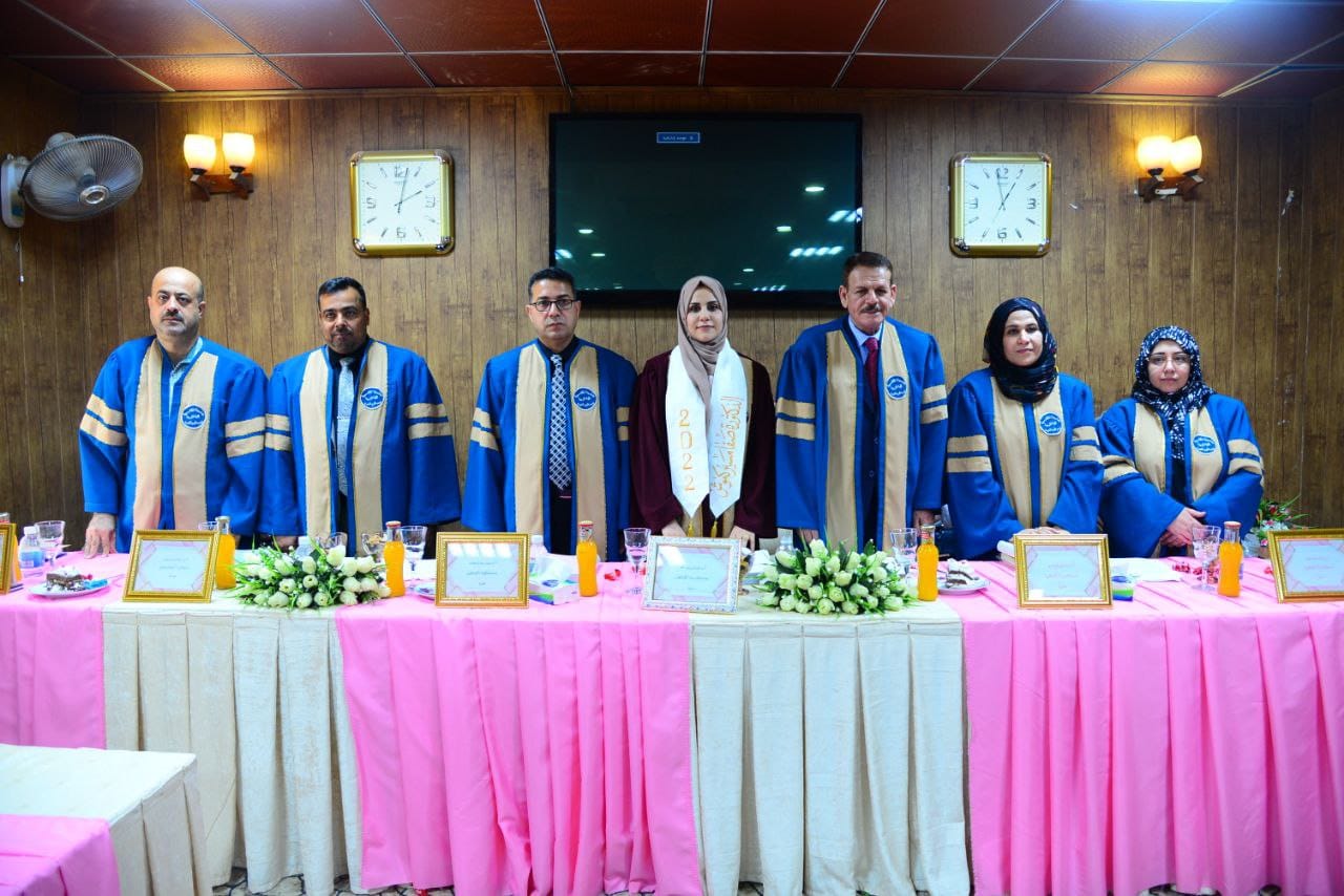 ناقشت أطروحة الدكتوراه في كلية التربية بجامعة القادسية والموسومة (دراسة تأثير تراكيز مختلفة من فيتامين D3 و الكولسترم (حليب اللبأ البقري) على بعض المعايير الفسلجية و المناعية في ذكور الجرذان البيض المعاملة بعقار السيسبلاتين) للطالبة صفا مسير كموش الشمري بإشراف أ. د. احمد جاسم حسن