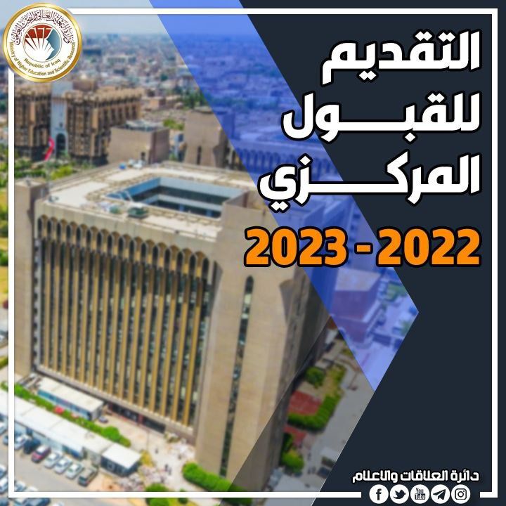 وتجدد وزارة التعليم العالي والبحث العلمي دعوة أبنائها الطلبة الى تدقيق اختياراتهم والاستعانة بدليل الطالب (http://mohesr.gov.iq/ar/ministry_uploads/2022/09/Dalel2223.pdf) لمعرفة التفاصيل المتعلقة بالجامعات والكليات وأقسامها والمعاهد التي سيقدمون إليها مؤكدة في الوقت نفسه أن القبول المركزي يتم على وفق الاختيارات المثبتة في الاستمارة الإلكترونية اعتمادا على رغبة الطالب والمنافسة في المجموع.