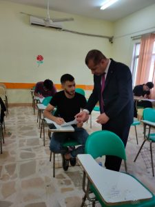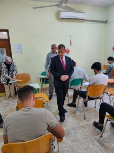 واطلع على الاستعدادات التي هيأتها عمادة الكلية واللجان الامتحانية ومستوى الخدمات المقدمة للطلبة خلال تأديتهم لامتحاناتهم فضلاً عن المستلزمات اللوجستية المتوفرة في القاعات الامتحانية ومدى توفير الأجواء الملائمة لإنجاح العملية الامتحانية وطبيعة الاسئلة الامتحانية حيث جرت الامتحانات بانسيابية عالية وتنظيم دقيق .