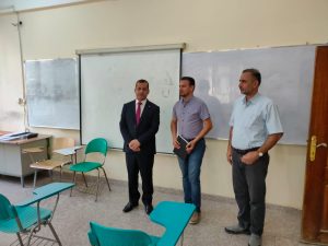 تفقد عميد كلية الهندسة جامعة القادسية أ.د باسم حسن شناوة بصحبة معاونيه للشؤون الادارية والعلمية للمرة الثانية خلال هذا الاسبوع ، القاعات الامتحانية لطلبة الكلية للدور الثاني للعام الدراسي ٢٠٢١ – ٢٠٢٢ .