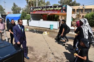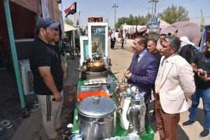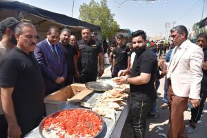 اطلع رئيس الجامعة على آليات تقديم الخدمات وطبيعة المواكب مشيداً بمواكب طلبة الجامعة ومتخرجيها ومشاركة اساتذتها فضلاً عن المواكب الخدمية الاخرى ونوعية الطعام والشراب والاستراحة والعلاج الذي توفره تلك المواكب للزائرين .