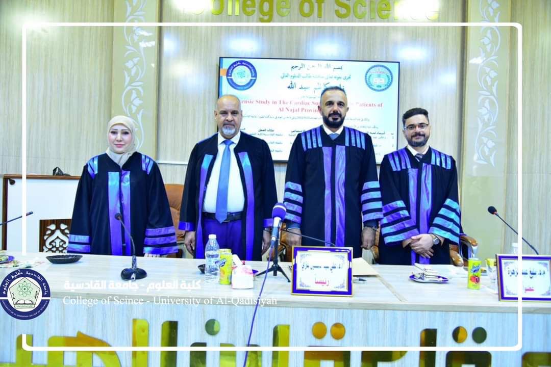 ناقشت رسالة بلوم عالي في قسم علوم الحياة بكلية العلوم في جامعة القادسية دراسة عدلية في الوفاة القلبية المفاجئة لدى مرضى مدينة النجف الأشرف للطالب زاهر كاظم عبد الله الخفاجي.