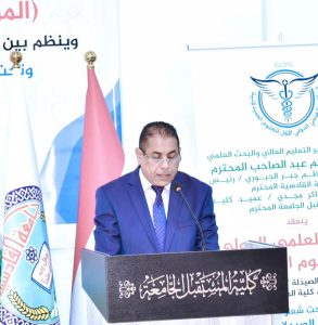 وقال ” نجتمع اليوم في رحاب المؤتمر العلمي الدولي الاول ، النادر بتخصصه ، وهو يرنو نحو الإفادة من إمكانيات البحث العلمي في سبيل رسم ملامح مستقبل ٍ يسعى بجدية اتجاه تطوير علم الادوية والعلاجيات ، والصيدلة السريرية والكيمياء الطبية ، وسعياً في مواكبة آفاق الصناعات الدوائية وعلوم الحياة والتحليلات المرضية “.