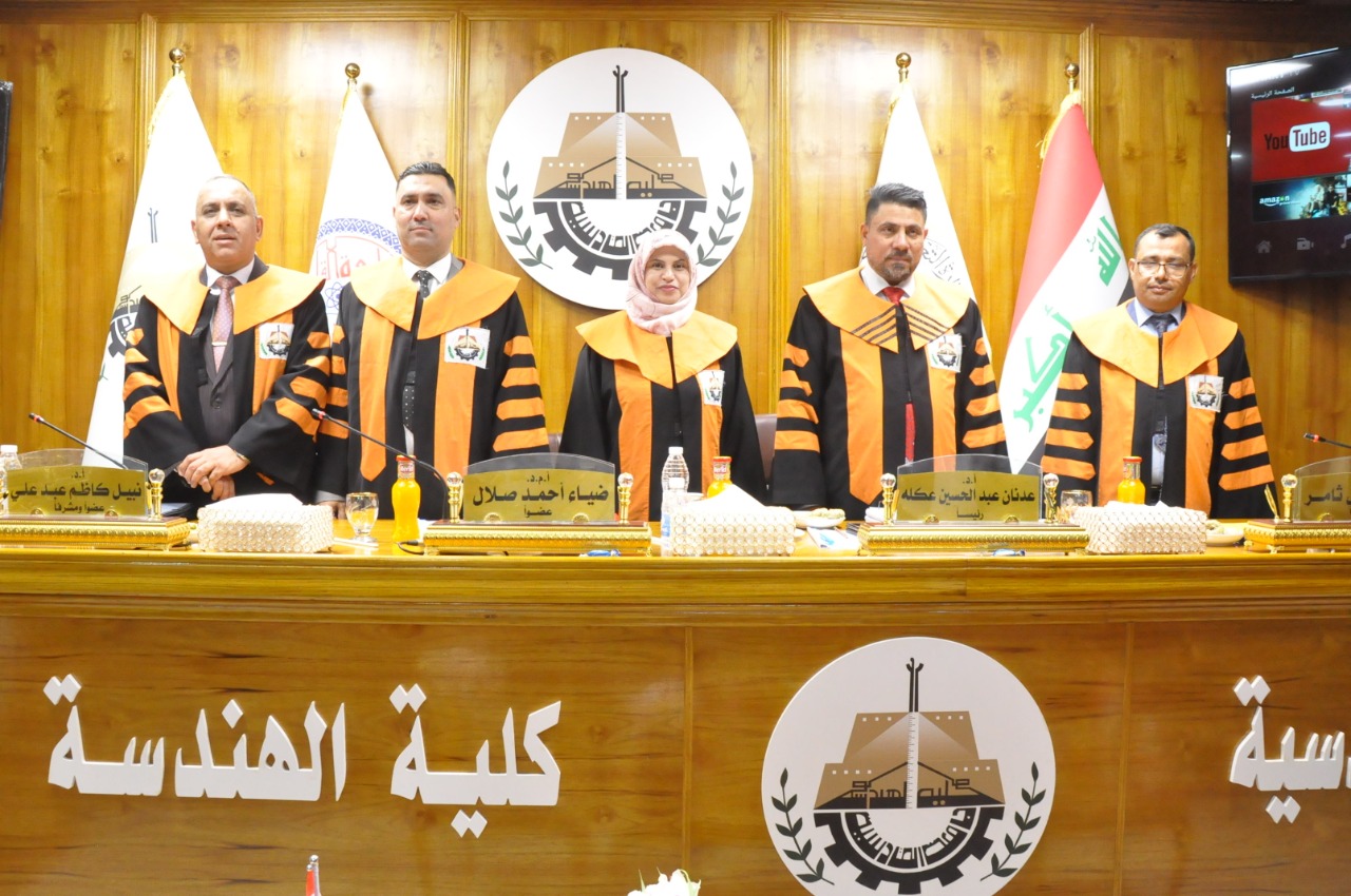 ناقش قسم الهندسة الميكانيكية في كلية الهندسة بجامعة القادسية رسالة الماجستير الموسومة (دراسة الخواص الميكانيكية للمواد المتراكبة المقواة باستخدام المخلفات الصناعية تحت تأثير الاحمال المختلفة) للطالبة رنا أحمد مهدي وبإشراف أ.د. نبيل كاظم عبد علي .
