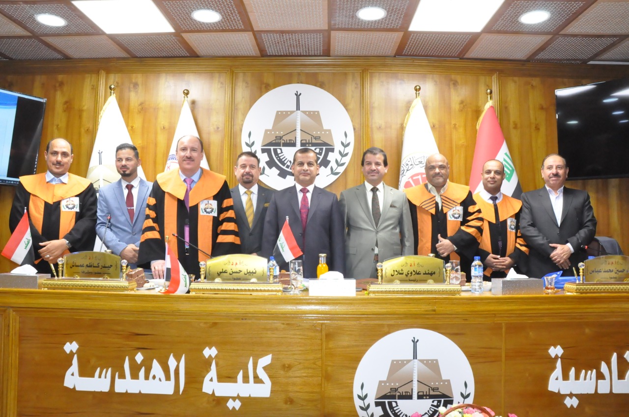ناقش قسم الهندسة المدنية في كلية الهندسة بجامعة القادسية رسالة الماجستير الموسومة (سلوك قص التثقيب للبلاطة الخرسانية المسلحة مع الفتحات اللاحقة) للطالب غانم حسين علي المنذور بإشراف أ.د حيدر كاظم عماش