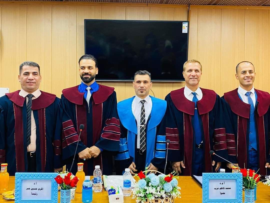ناقشت رسالة ماجستير في كلية التربية البدنية وعلوم الرياضة في جامعة القادسية تأثير تدريبات لاهوائية نوعية في بعض القدرات البيوحركية والجوانب المعرفية لأجتياز الاختبار الخاص بحكام كرة القدم للصالات للطالب أحمد زغير عيدان .