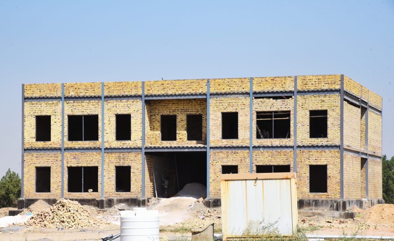 اذ يتواصل العمل بتشييد مشاريع عمرانية جديدة بكلية الآداب عبر انشاء قاعات دراسية ذات طابقين متعددة الاغراض من الهياكل الحديدية ( steel structure )