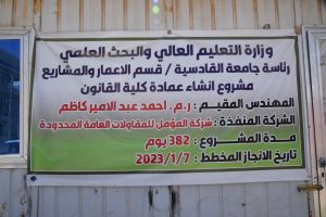برعاية رئيس جامعة القادسية الاستاذ الدكتور كاظم جبر الجبوري وتحت اشراف عميد كلية القانون الاستاذ الدكتور نظام جبار طالب وجهود قسم المشاريع والاعمار ..