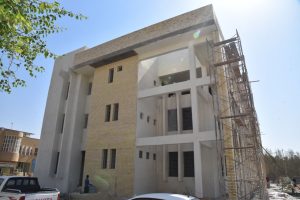 اذ يتواصل العمل بتشييد مشروع العمادة الجديدة لكلية القانون بمساحة 1258 متر مربع ينطوي المشروع على ثلاثة طوابق و 32 غرفة للملاك الاداري للكلية فضلاً عن قاعات كبرى ومكاتب حديثة وأروقة وحدائق حديثة المواصفات.