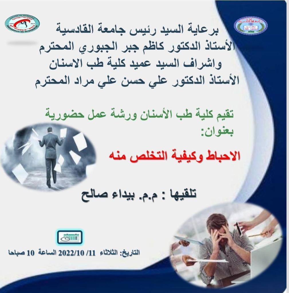 تقيم وحدة التعليم المستمر بالكلية ورشة عمل حضورية بعنوان 🙁 الاحباط وكيفية التخلص منه)