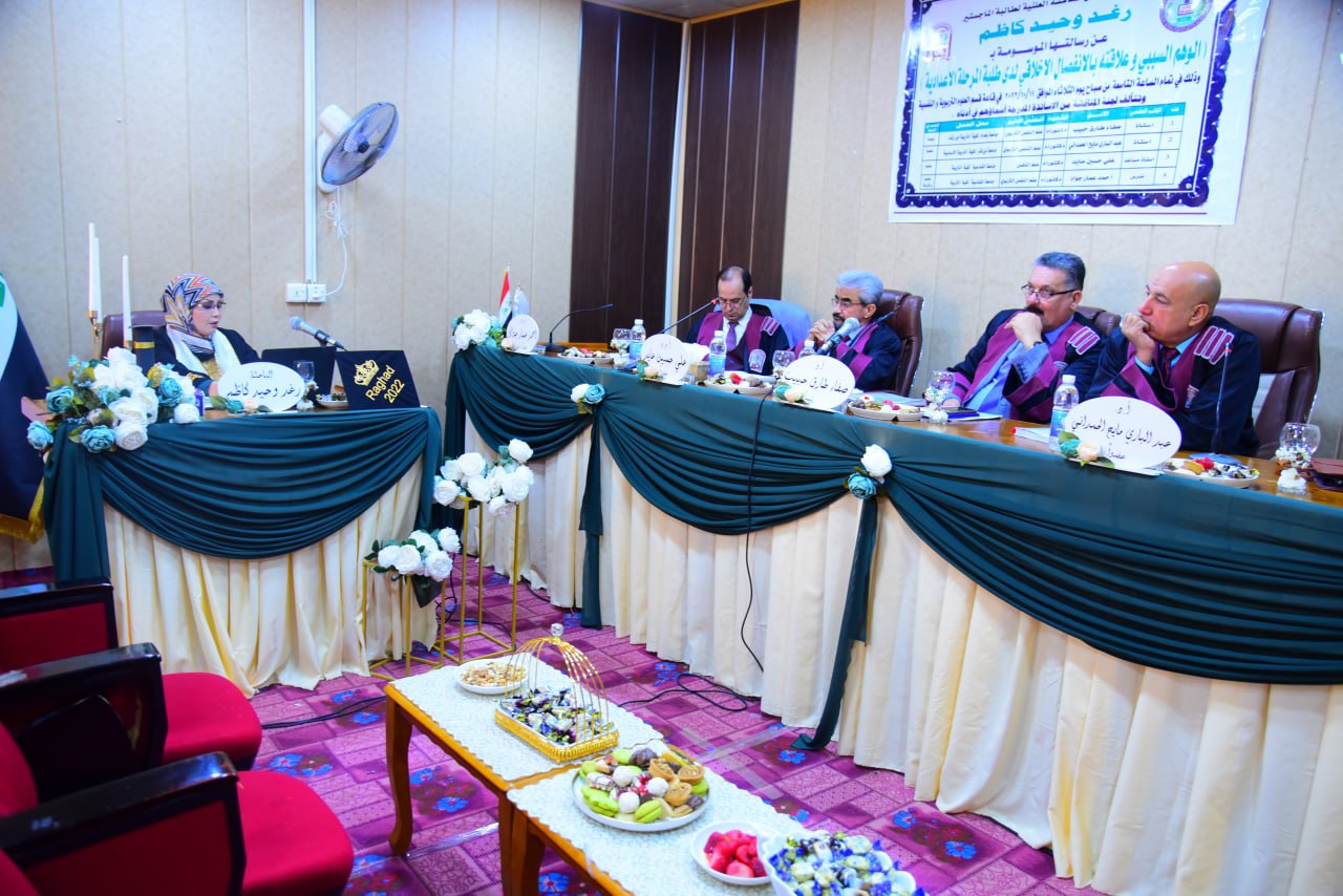 ناقشت رسالة الماجستير في كلية التربية جامعة القادسية والموسومة (الوهم السببي وعلاقته بالانفصال الاخلاقي لدى طلبة الاعدادية)) للباحثة رغد وحيد كاظم علوان