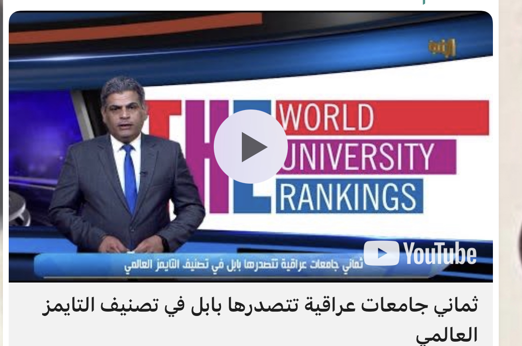 صفحة المقالات اخبار *ثماني جامعات عراقية تتصدرها بابل في تصنيف التايمز العالمي*