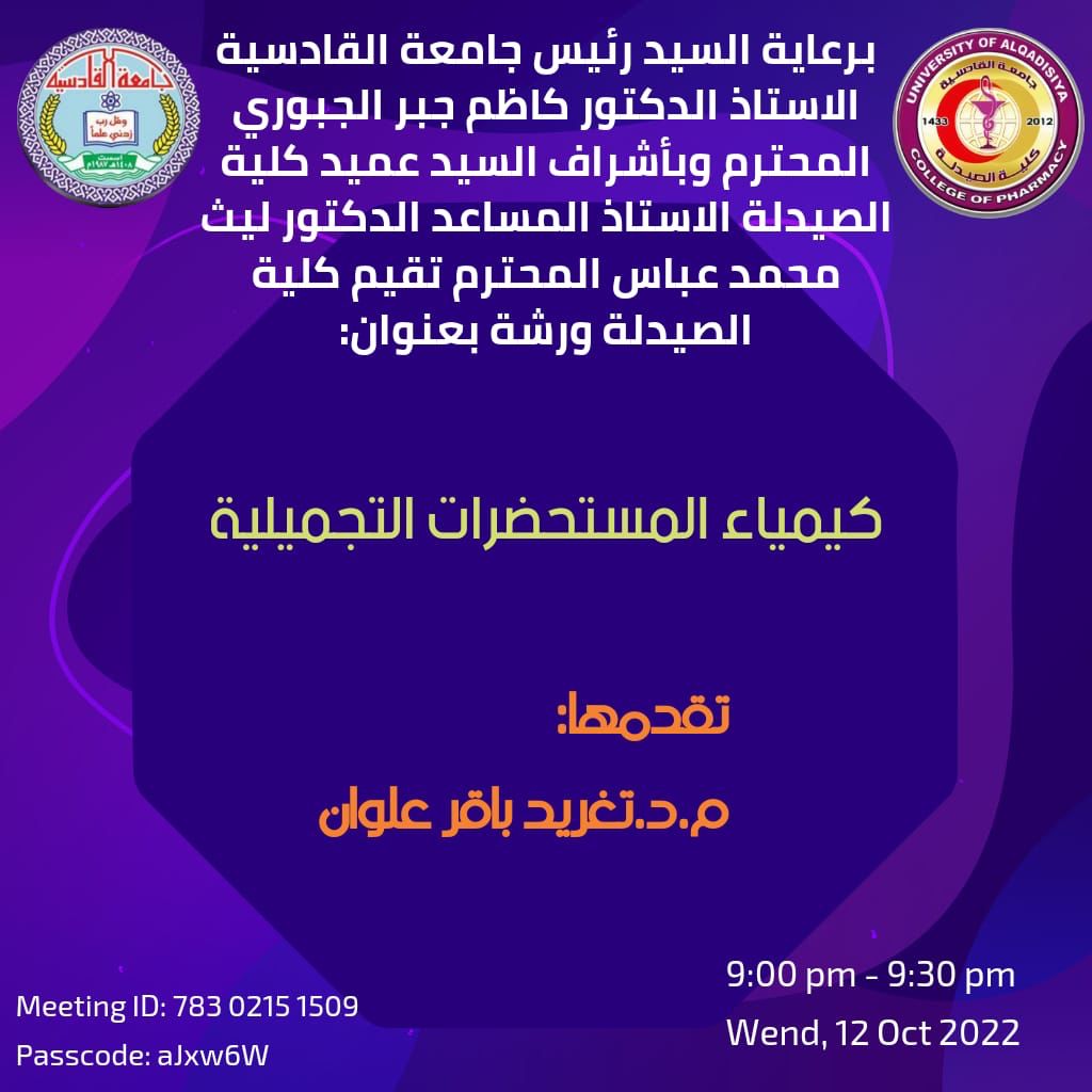 نظمت كلية الصيدلة بجامعة القادسية ورشة علمية حول كيمياء المستحضرات التجميلية.