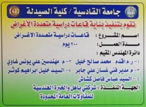 باشرت كلية الصيدلة بجامعة القادسية بتنفيذ بناية قاعات دراسية متعددة الاغراض .