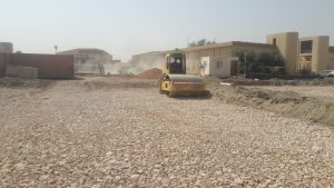 وتتضمن الاعمال الاولية التي تنفذها شركتي باهل والخبرة الهندسية للمقاولات العامة المحدودة تنفيذ الأعمال الترابية ثم اضافة طبقة الجلمود للوصول إلى المستوى المطلوب في العمل والتهيئة لفرش طبقة السبيس