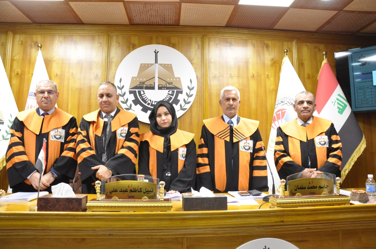 ناقش قسم الهندسة الميكانيكية في كلية الهندسة بجامعة القادسية رسالة الماجستير الموسومة(النمذجة والمحاكاة شد اختبار قوة الأنابيب النانوية الكربونيةعينة) على قاعة مناقشات الدراسات العليا في الكلية للطالبة نور سامي عبود بإشراف أ.م.د محمد عبد الرزاق و أ.م.د. عمار جبار بدر .
